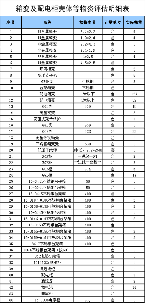 8、箱變及配電柜殼體等物資,起拍價(jià)68萬(wàn)元;