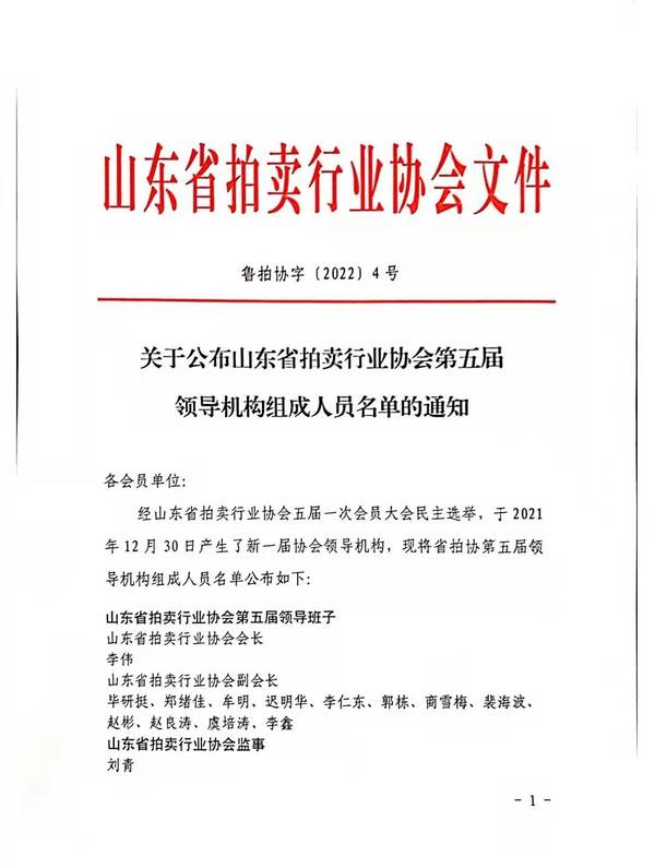 選舉,青島市拍賣中心被推選為山東省拍賣行業協會副會長單位,公司執行董事趙彬同志當選為山東省行業協會副會長。
