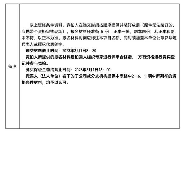 2、競買登記辦理要求:通過資格預審后符合條件的競買人應在2023年3月1日下午16點前(到賬為準)將拍賣保證金繳至指定帳戶(收款單位:青島市拍賣中心有限公司;開戶行:青島銀行海爾路支行;賬號:802230200293039),逾期不予辦理。