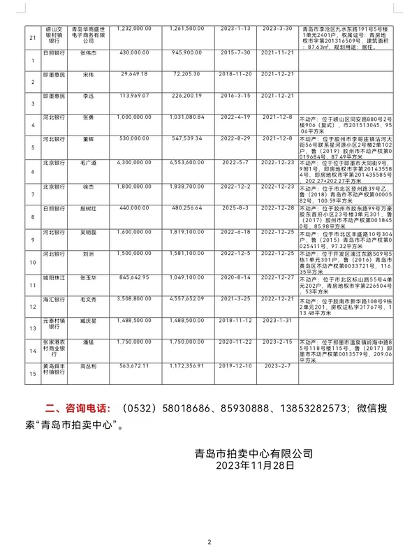 債權(quán)類標(biāo)的拍賣招商公告(二)