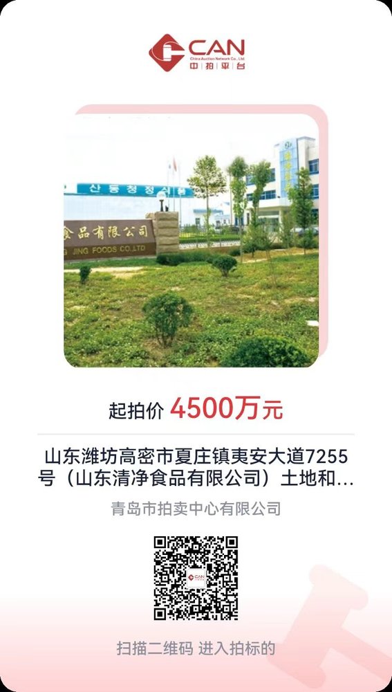 山東濰坊高密地區土地、廠房拍賣公告(山東清凈食品有限公司)
